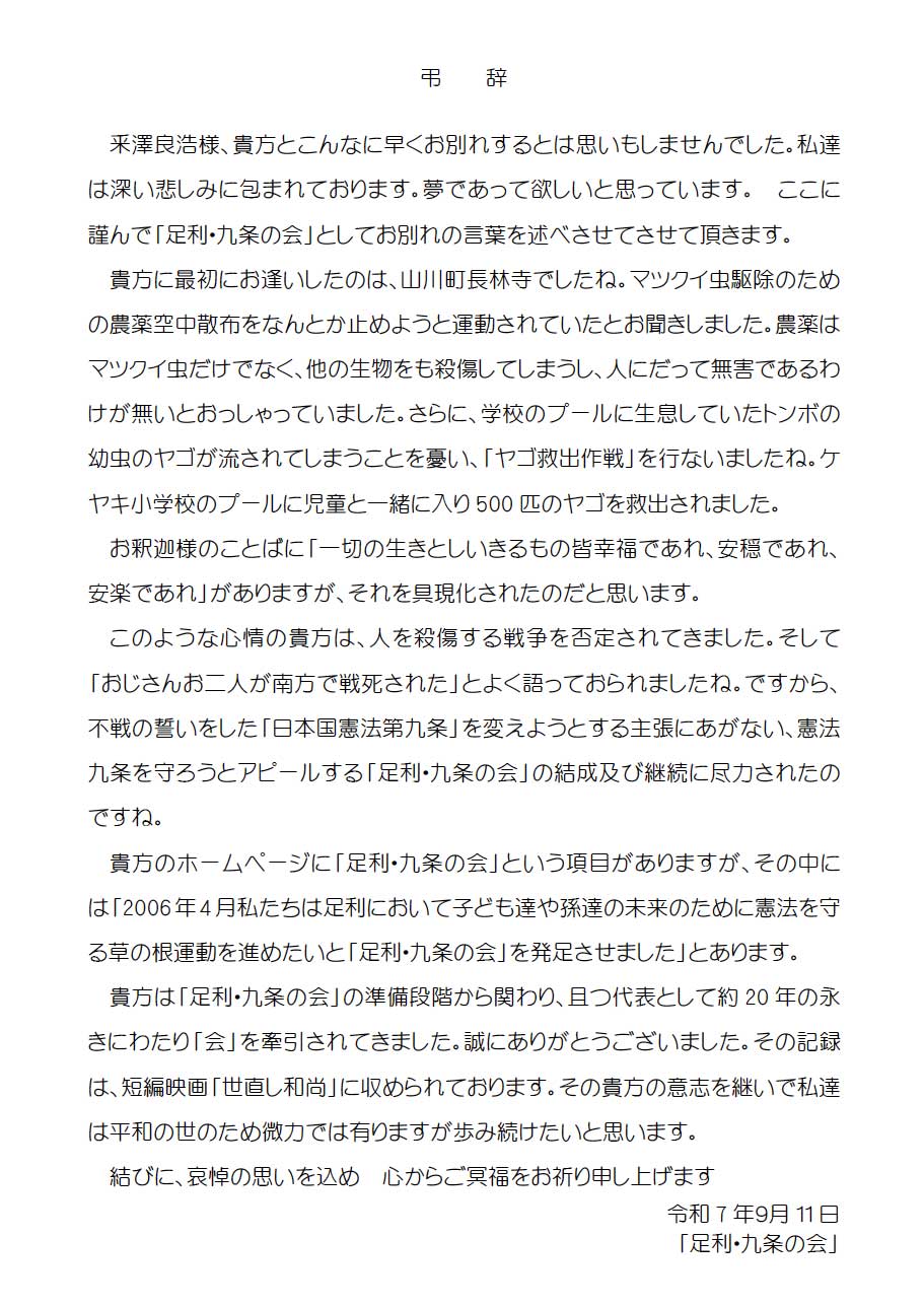 「足利・九条の会」サイトはリンクフリーです.リンクいただける場合は,リンクを張られるページのURLと管理者のお名前,メールアドレスを明記の上ekip《info@ekip.net》までメールを下さい.また,リンクを張られる場合は以下のアイコンをご自由にお使い下さい.リンク先はトップページ《http://www.ekip.net/9jo/》にして下さい.サイト内へのリンクを張られた場合,構成の変更などによりリンクが切れる場合もあります.