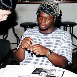 演奏後も快くしてくれるグレゴリーハッチソン.
