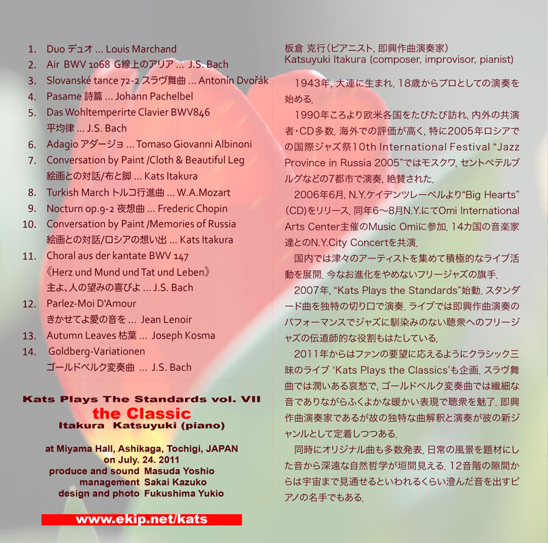 recorded at MIYAMA HALL, Ashikaga, Tochigi, JAPAN July 24, 2011 Unit the Standards Record, S-11-1