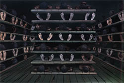 隣は私が特に衝撃を受けた、奴隷船内の寝室の絵です。 |
