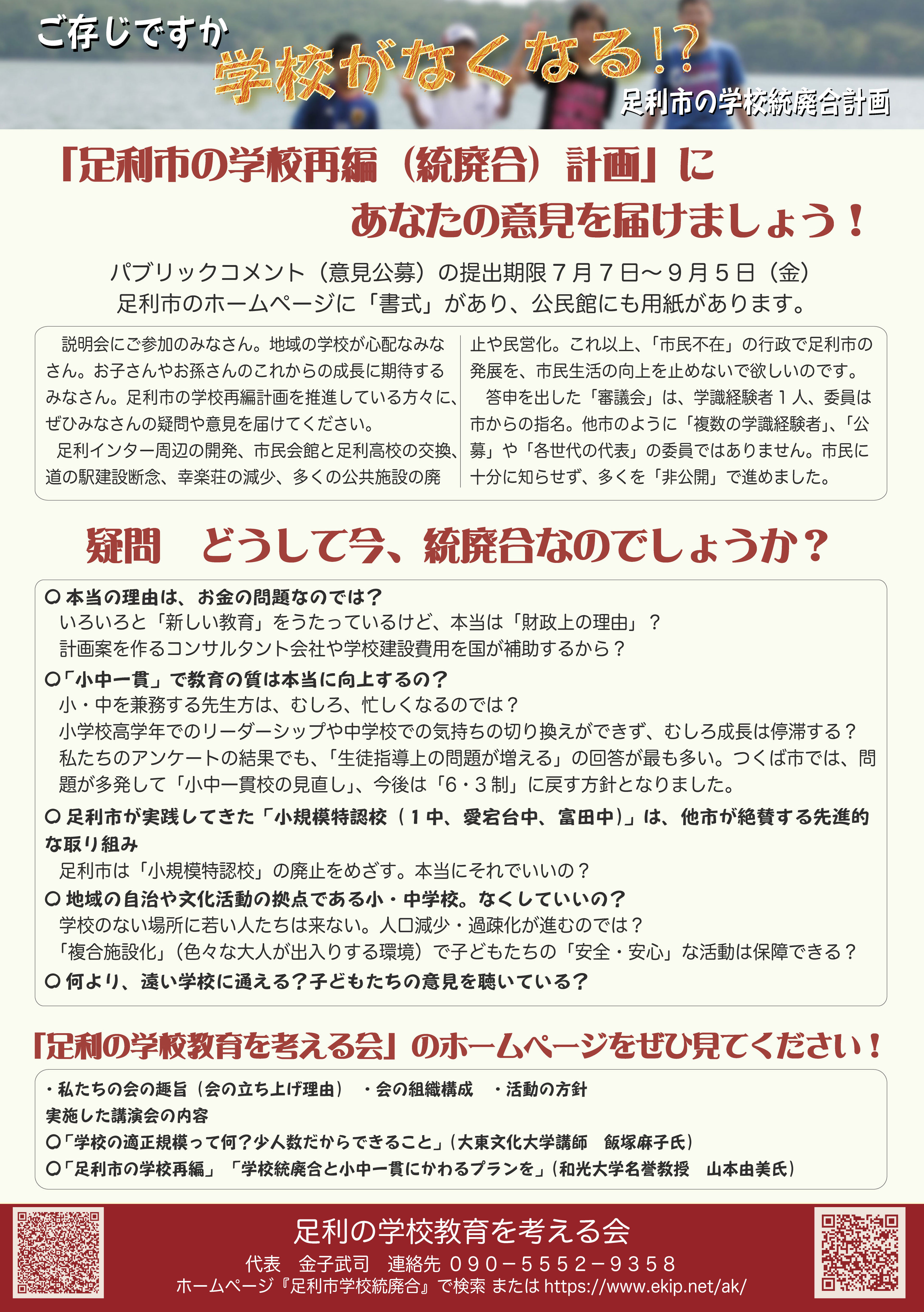 足利市の学校再編(統廃合)計画」に、 あなたの意見を届けましょう!